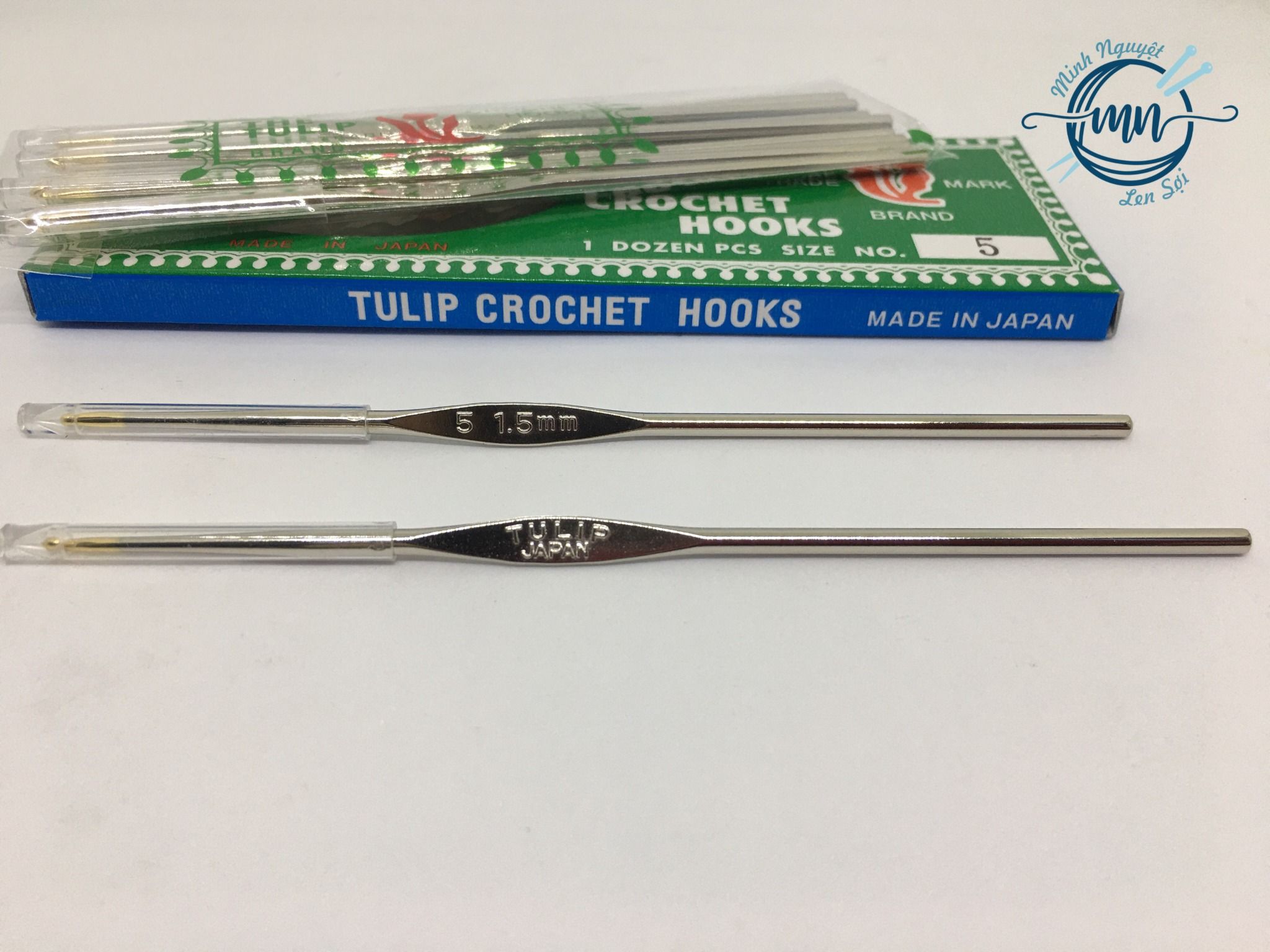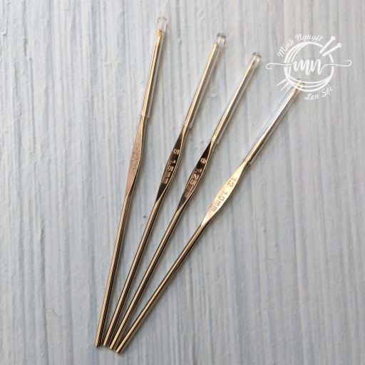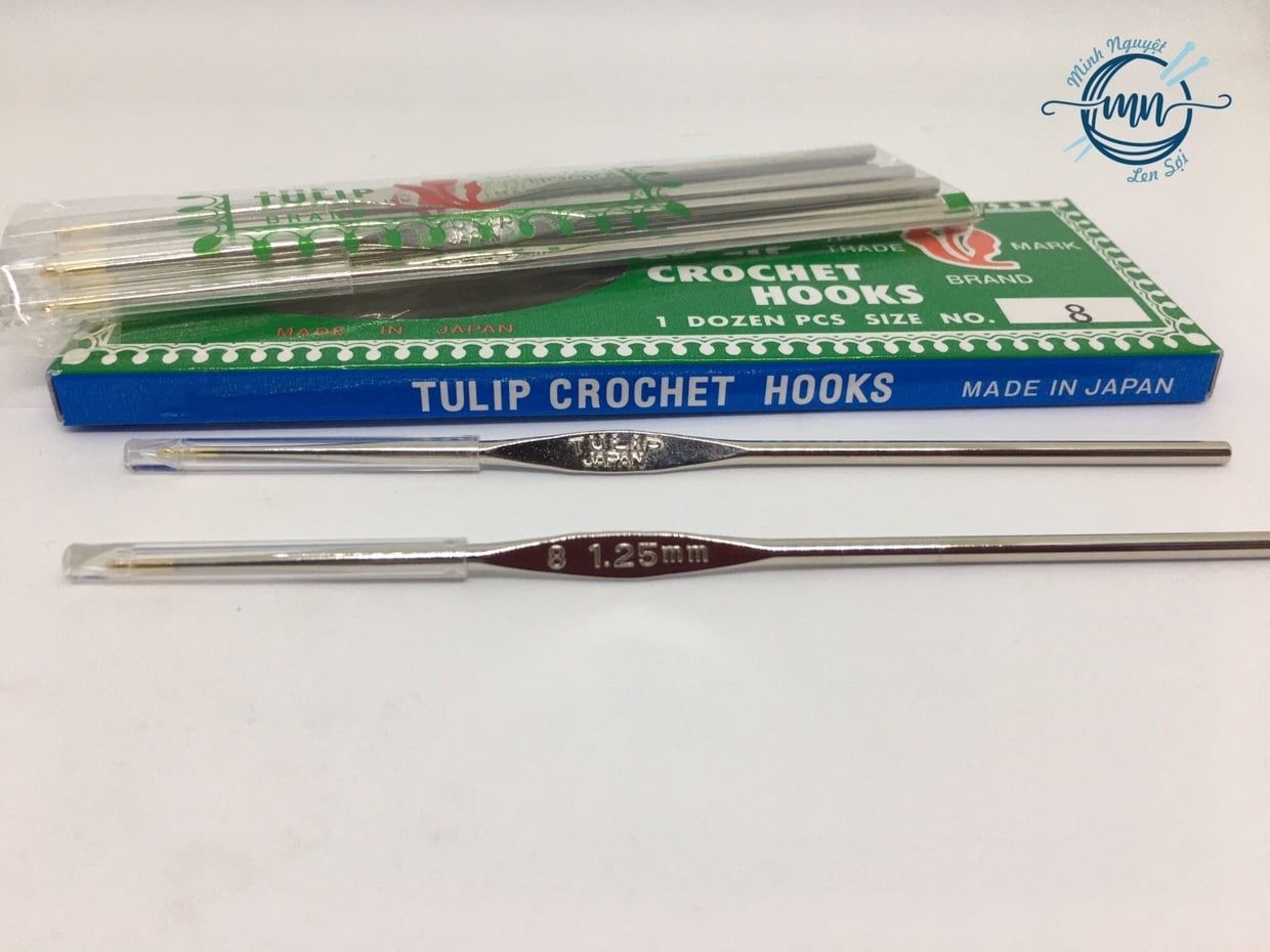 Kim móc Tulip cán bạc với thân và đầu kim bằng thép không gỉ (steel) giúp kim móc trơn mượt, không vướng sợi. Kim gồm các size: 1.0mm, 1.25mm, 1.5mm và 1.75mm.