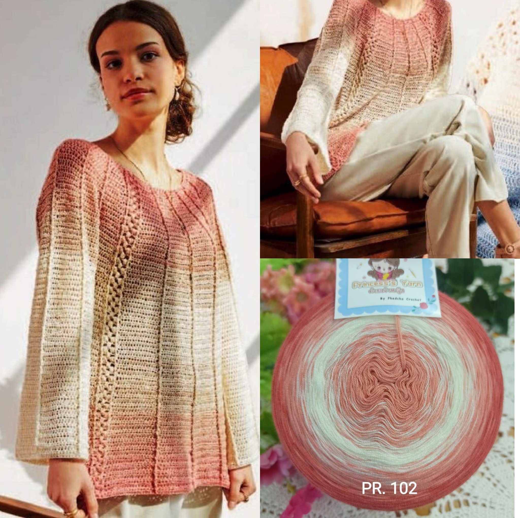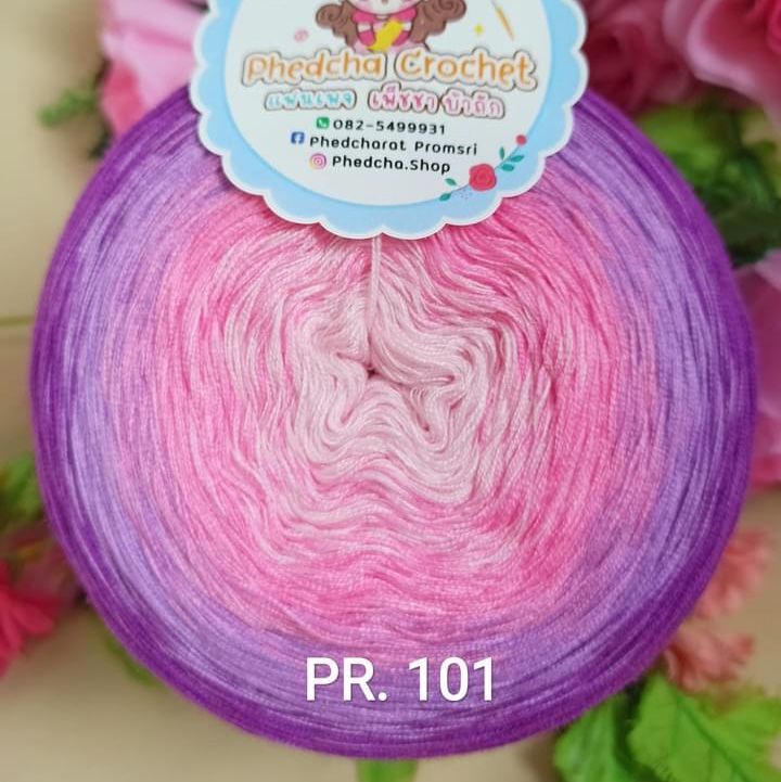 Sợi cầu vồng xuất xứ từ Thái Lan được phối màu tinh tế, uyển chuyển, chất sợi mềm nhẹ thích hợp móc váy, đầm, áo dài, khăn choàng...